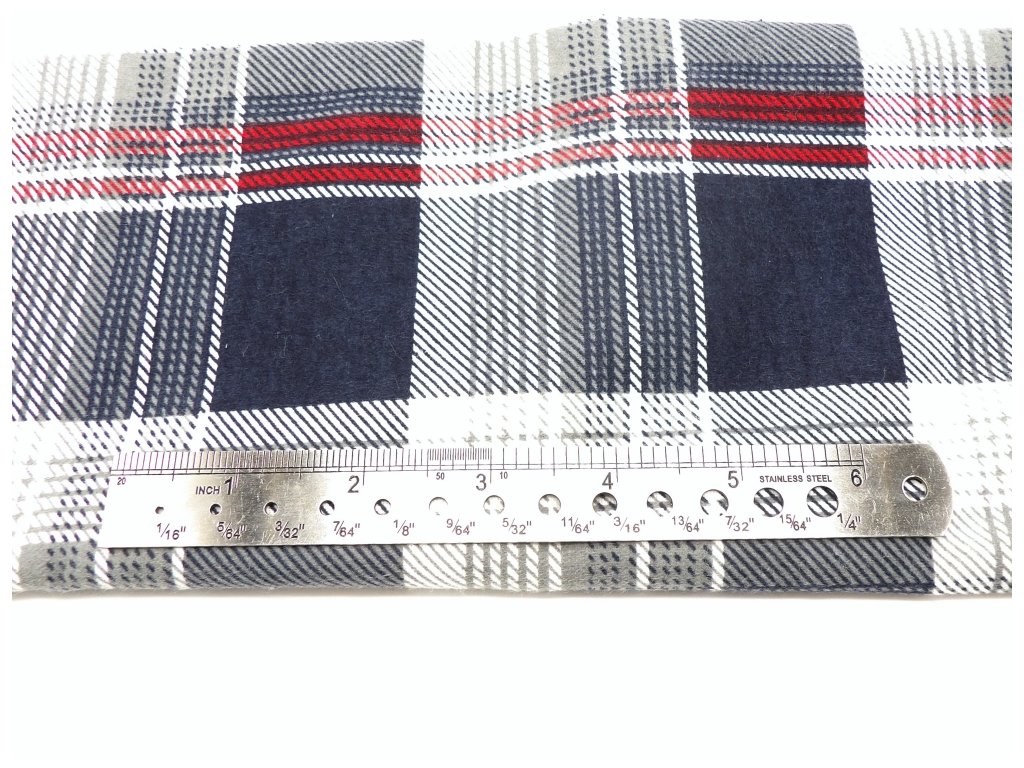 FLANEL 165 (A5 kostky velké modro-červeno-šedé) -150cm / METRÁŽ NA MÍRU
