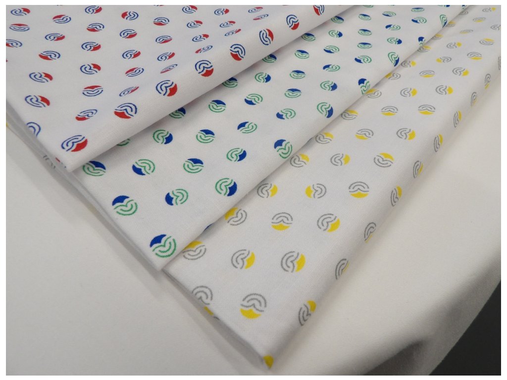 Úprava: bělená tkanina, opticky zjasněná, potisk pigment 90°C,